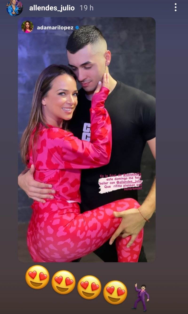 En sus redes sociales, la conductora de Un Nuevo Día compartió una story al lado de Julio y escribió: “En la final de #asisebaila este domingo me toca bailar con @allendes_julio. ¿Qué ritmo piensan que bailaremos?”. Obviamente, la publicación de ‘Ada’, alborotó a sus seguidores, pues la imagen que compartió al lado de Julio era muy sensual, además de que ella se veía muy sonriente a su lado.