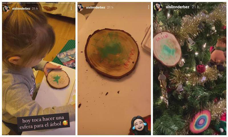 A través de Instagram stories, la actriz de 33 años compartió la bonita actividad manual que se puso a hacer con su hija. En los videos, se aprecia a la pequeña de dos años súper concentrada elaborando su esfera. ‘Kai’ optó por hacer un pinito y pintarlo de verde, mientras que su mamá hizo un adorno multicolor, que al final llamó la atención de su hija. La nieta de Eugenio Derbez pintó su decoración con los trazos propios de su edad, lo cual será un auténtico recuerdo para cuando sea más grande. Otro de los detalles que llamó la atención es que la esfera de la niña—que cumplirá tres años en febrero próximo—tenía su nombre escrito al parecer por ella misma.
