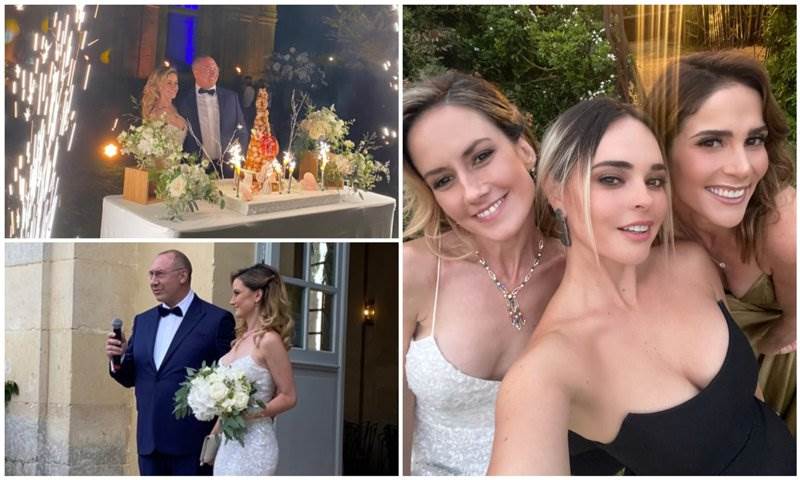 Un día antes de este festejo, la pareja se casó por el civil en el centro de París. En sus redes sociales, la estrella de telenovelas dio un vistazo a esta pequeña ceremonia. Para su enlace civil, eligió un jumpsuit blanco del diseñador libanés Zuhair Murad con transparencias, encajes y un poco de pedrería. En cuanto a su ramo de novia, llevó un atado de rosas inglesas con un poco de follaje, el cual le daba un toque extra de romanticismo a su look de novia. En tanto, García optó por un traje azul con una camisa blanca. En su perfil de Instagram, la actriz publicó una fotografía del feliz acontecimiento y escribió: “Hoy en una ceremonia íntima en el centro de Paris @fglecercle y yo nos dijimos: OUI!!!