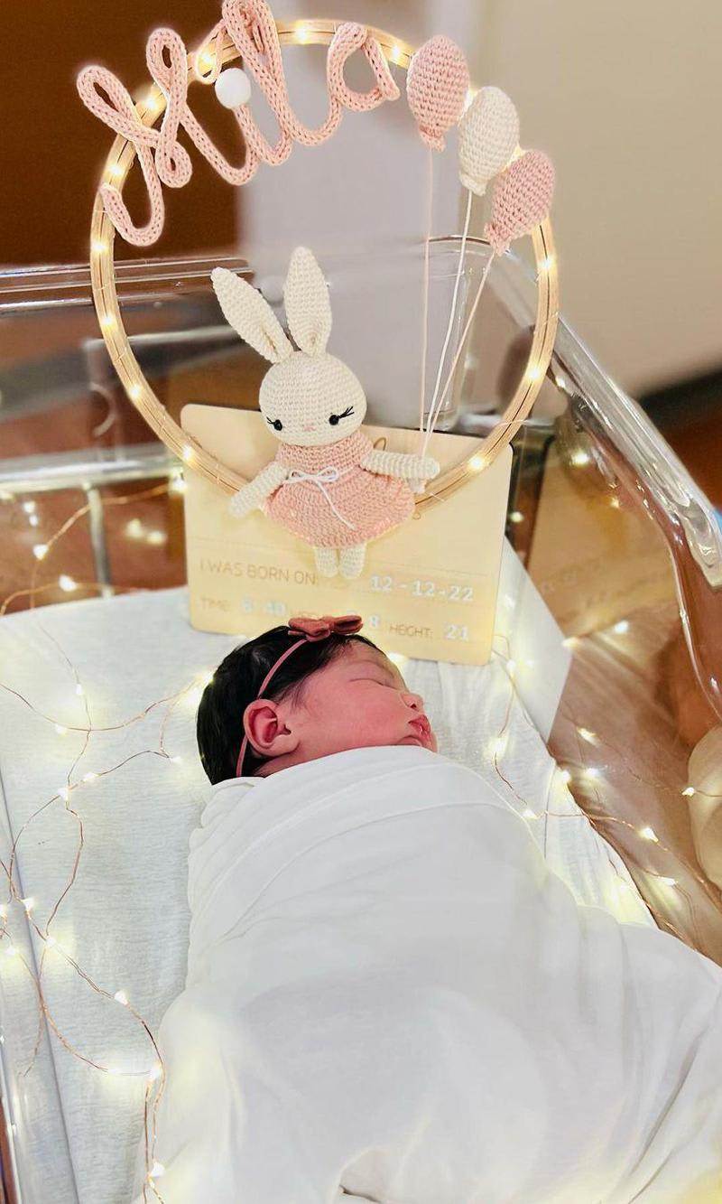 En la imagen, se aprecia a la nueva integrante de la familia, acostada plácidamente en una cuna, arropada con una mantita blanca y un tierno adorno de un conejito con su nombre escrito, además de otros detalles como su fecha de nacimiento. La bebé nació en punto de las 8:40am, pesó 8.8 libras y midió 21 pulgadas. A unas horas de nacida, la pequeña Mila ya tiene su cuenta de Instagram creada por sus padres, y en la plataforma está como @milahorford.