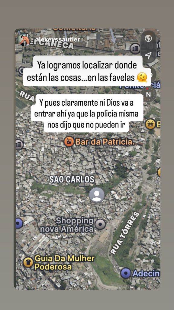 Gracias a las herramientas de geolocalización y a que los ladrones no apagaron el celular, Ana y su familia pudieron ver en dónde estaban sus cosas: en las favelas. Tal como lo habían comentado los policías, los ladrones huyen a esa zona de Brasil para continuar con la venta ilegal de celulares. “Y pues claramente ni Dios va a entrar ahí ya que la policía misma nos dijo que no pueden ir”, explicó en sus historias, revelando su motivo para no seguir la pista del mapa.