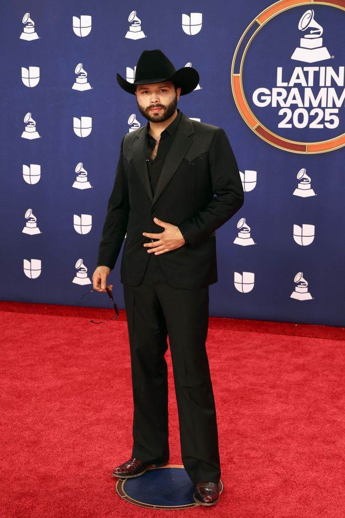 Como era de esperarse, la alfombra roja de los Latin GRAMMY se llenó de estrellas y personalidades de la música latina, que posaron frente a las cámaras para lucir sus looks de esta gran noche de premios. Sobre ella, desfiló Ángela Aguilar, quien llegó al evento con un vestido largo en color de escote halter que dejaba al descubierto su espalda. Junto a ella, posó su esposo, Christian Nodal, que para la ocasión llevó un traje gris con camisa negra, y marcó un estilo menos formal al no incluir corbata.