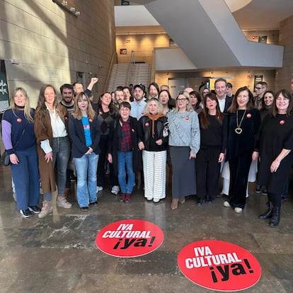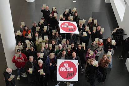 El sector lleva años planteando su reclamación y solo recibe el “silencio más absoluto” del Gobierno. Por eso gritan frente a la obra considerada como el último exiliado de la Guerra Civil: “Ministro de Cultura [Ernest Urtasun] dimisión y ministra de Hacienda [María Jesús Montero] dimisión”. Hasta ahora, ninguna administración, incluida la actual, ha aplicado la directiva europea de 2022, según la cual cada Estado miembro puede aplicar tipos reducidos de IVA (mínimo 5%) a bienes y servicios culturales. De esta forma, Italia aplica el 5%; Francia el 5,5%; Alemania el 7%, y Portugal, el 6%.