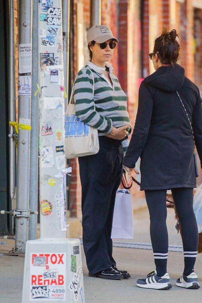 El pasado fin de semana, específicamente el 11 de abril, Aubrey fue fotografiada durante una salida de compras en la ciudad de Nueva York. La actriz de 41 años lucía relajada mientras charlaba con una amiga en Tribeca, frente a 180 The Store. Aunque al parecer se percató de que era seguida por el paparazzi, siguió conversando tranquila y acariciando dulcemente su baby bump.