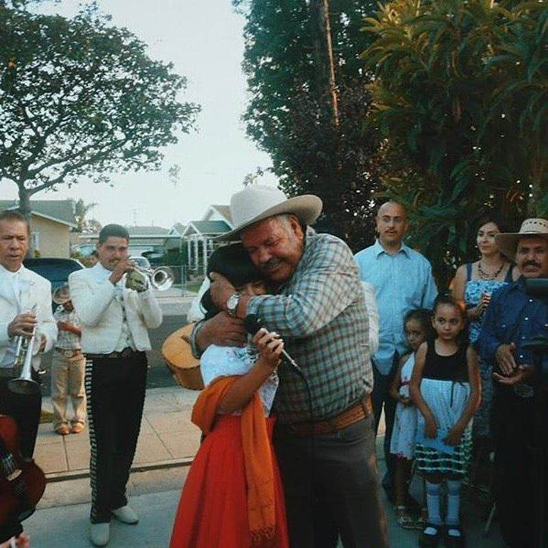 Junto a estas palabras, la cantante compartió un par de nostálgicas fotos, la primera de ellas tomada hace ya varios años, en la que se le veía rodeada por los brazos de su abuelo, siendo apenas una niña. Al parecer, a tan corta edad ya tenía claro su camino en la música, pues se le veía sosteniendo un micrófono y acompañada de mariachis. También publicó otra foto más reciente en la que se le veía abrazando a su abuelito.