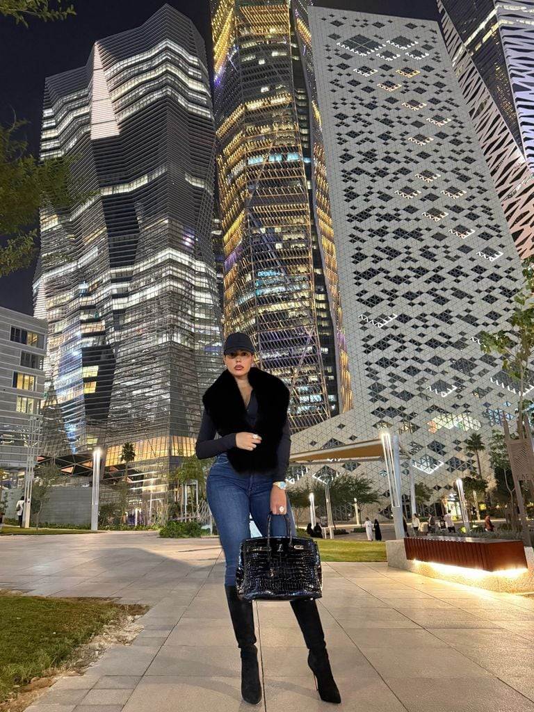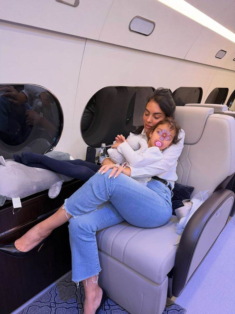 Georgina no reveló detalles sobre su salida con su hija, pero al parecer ambas se encontraban en un edificio de oficinas. En una publicación posterior este 10 de diciembre, la modelo reveló que se encontraba en el King Abdullah Financial District (KAFD), un desarrollo urbano y centro de negocios en Riad, Arabia Saudita. Al parecer, aquellas fotos fueron tomadas el mismo día que la de Bella, pues ‘Gio’ usaba la misma estola y bolso con los que su nena fue retratada. La prometida de Cristiano complementó su look con unos jeans azules, camiseta negra de manga larga, gorra y botas puntiagudas de tubo alto a juego.