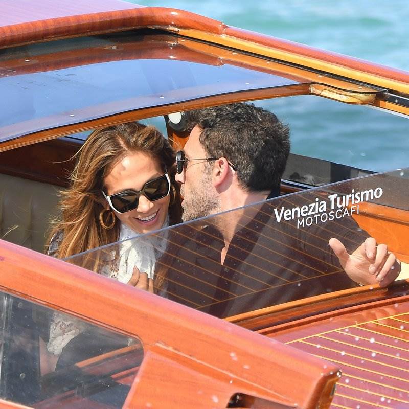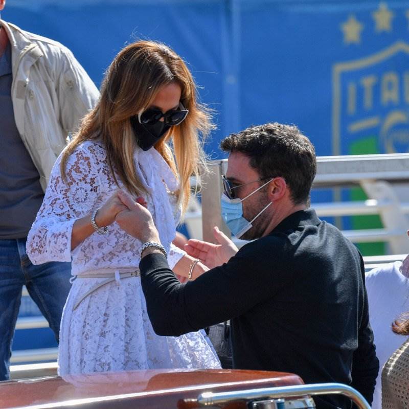 Lopez y Affleck llegaron a la ciudad en un bote privado, y ambos se dejaron ver con gafas de sol , además de aparecer con outfits inspirados en el ying y el yang. El actor usó un look todo en negro, mientras que JLo lució un impecable atuendo en blanco.