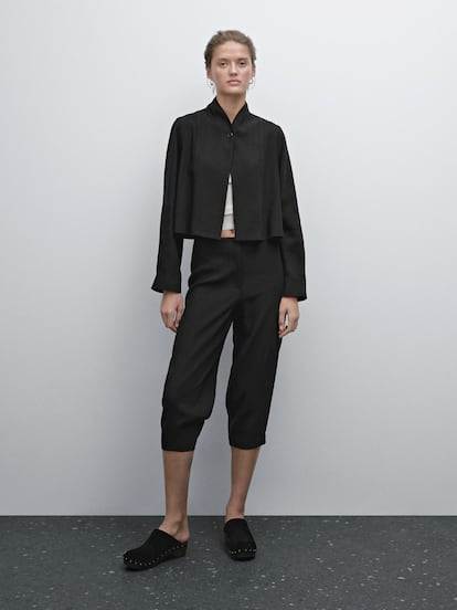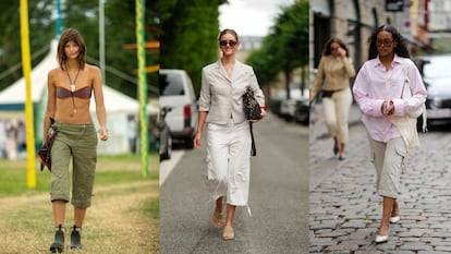 Pero el pantalón capri también se postula como parte de un vestuario effortless si lo acompañamos de un estilo más holgado, como el cargo con generosos bolsillos. Una opción tan versátil como para ir al festival de Glastonbury acompañado de unas botas de agua —el uniforme de la modelo Mia Regan en su última edición— o bien con una camisa de lino en la jornada intensiva de verano.