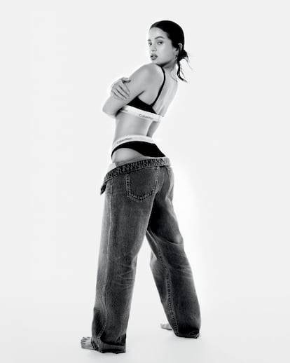 Rosalía es la protagonista de la nueva campaña de Calvin Klein. En ella, la cantante luce algunas piezas clásicas de la colección de ropa interior: los sujetadores y bragas de algodón con el mítico elástico blanco, que han posicionado a la marca como un referente icónico de la lencería.