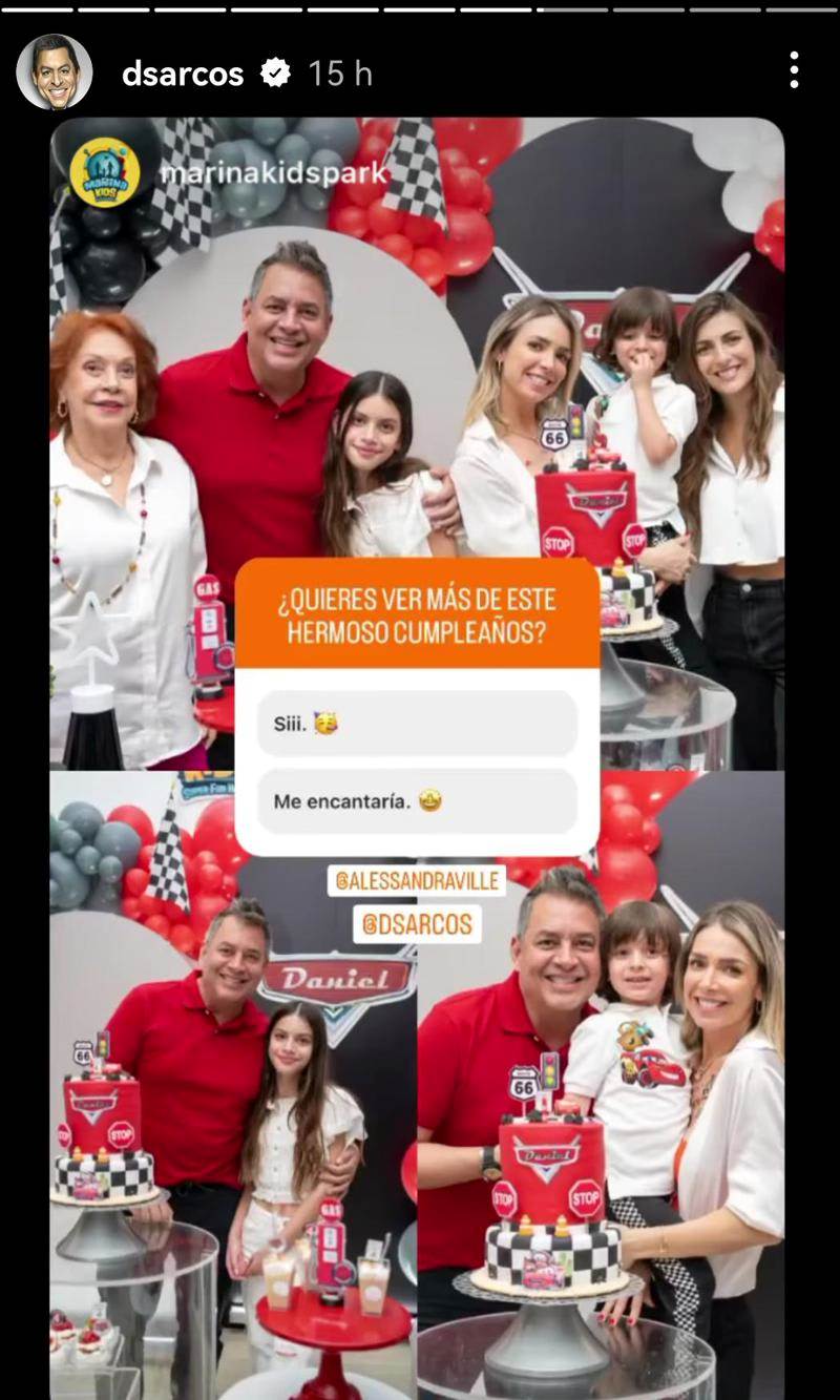 Daniel Sarcos y su pareja, Alessandra Villegas, celebraron el cumpleaños número cuatro de su pequeño hijo Daniel Alejandro. Para la ocasión tan especial, los padres del pequeñín organizaron una fiesta temática de la película Cars, la cual es una de las preferidas de su hijo. La piñata, el pastel y hasta las actividades para entretener a los invitados tuvieron que ver con el filme animado infantil. A esta celebración en familia no podría faltar Carlota, la hija de Daniel con Chiquinquirá Delgado.