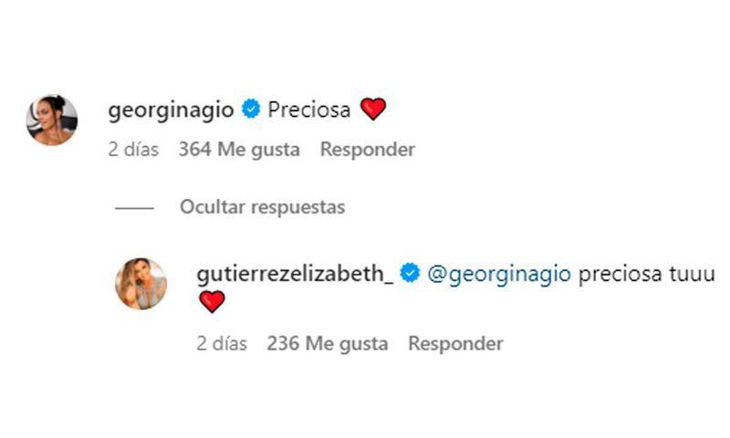 Con esto, queda claro que Georgina está al pendiente de las redes de sus amigas, aunque estas sean solo a través de las redes sociales. Además del intercambio de mensajes, las dos se siguen mutuamente en Instagram y se dan ‘likes’ en sus publicaciones.