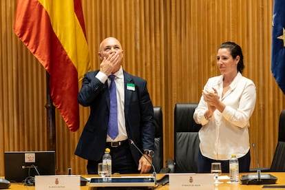 ―Hay veces que hay que reírse de estos temas tan serios y hace falta un poquito de humor—, le ha dicho para despedirlo al acabar su intervención Rocío Aguirre, la diputada de ultraderecha y conductora de la primera mesa: Jurídico-político. ¿Cómo se han configurado las leyes de Violencia de Género?
