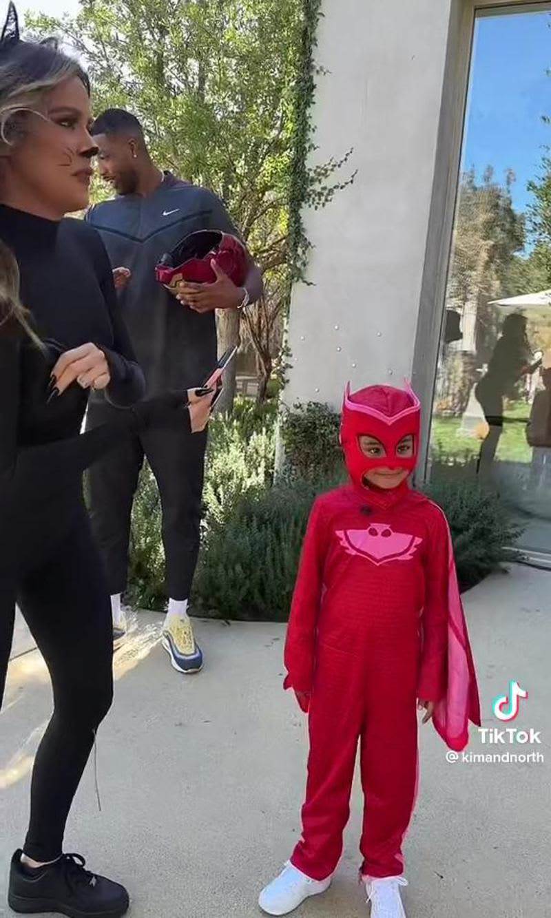 Aunque apenas fue una fracción de segundo, el tiempo que apareció a cuadro, fue suficiente para evidencia que, tras la polémica de los últimos meses, ‘Koko’ y el basquetbolista de volvieron a unir por sus hijos. En la imágenes se podía ver a Tristan al fondo sosteniendo un casco de Iron Man, mientras Khloé estaba delante vestida con un enterizo negro y maquillaje de gato, justo al lado de True que posaba sonriente con su disfraz.