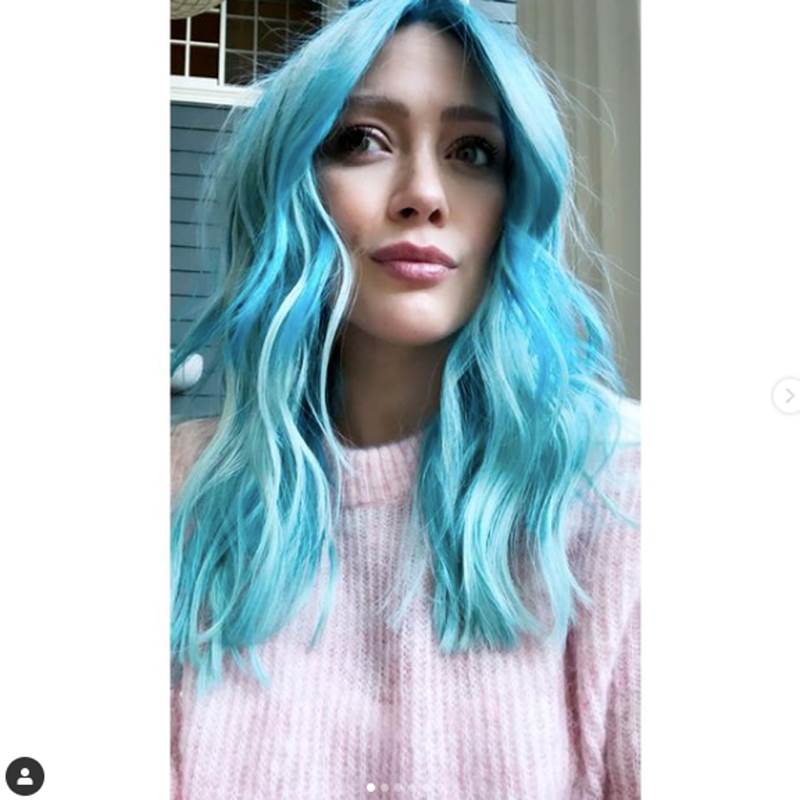 Por otra parte, no podemos pasar por alto el look de la protagonista de Lizzie McGuire. Hace apenas unas semanas, Hilary decidió hacerse un cambio radical, ¡se pintó el pelo de azul! por lo que aparece en cada foto con su nueva melena y un delicado vestido de seda en tonos rosas.