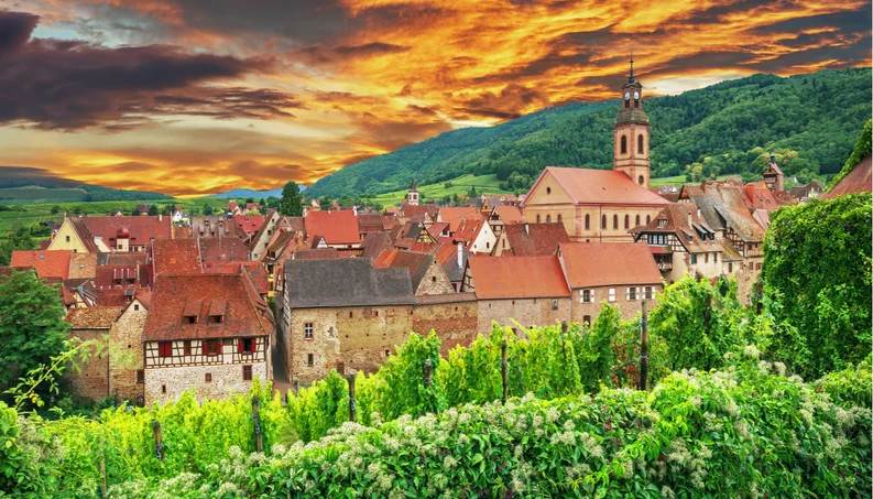 Se trata de Riquewihr, un pueblo situado en Alsacia, una bonita localidad europea que sobresale por sus alegres y coloridas casas, sus adornos medievales y los enormes viñedos que resguarda en su interior.