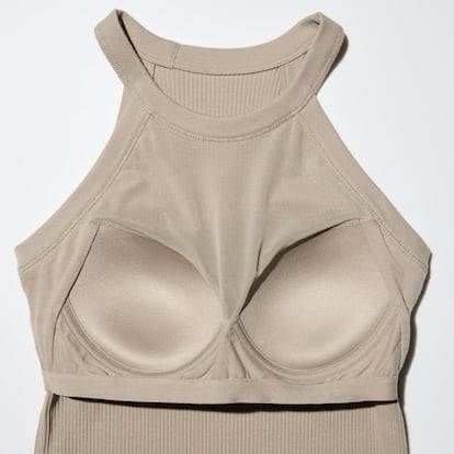 ♬ original sound - Ibiza RecordsAparte de evitar que asomen los tirantes del sujetador, otra de las ventajas más evidentes de la prenda tiene que ver con la comodidad. Dar con la talla de sujetador no es tarea sencilla (se estima que entre un 70 y 80% de las mujeres no llevan la talla adecuada) y estas malas elecciones pueden dar lugar, entre otras cosas, a rozaduras, pequeños dolores o incomodidades varias. No es que la camiseta con sujetador vaya a resolver esta problemática, pero sí se alza como una alternativa para quien busca un plan B que le permita no tener que usar un sujetador tradicional, con todo lo que ello conlleva. A la hora de elegir un bra top, la talla responde al tallaje habitual (en Uniqlo comienza en la XXS hasta la XXL), no a las necesidades concretas del tipo de busto, por eso hay que tener en cuenta que esta tipología de prendas no ofrece el mismo agarre que un sujetador al uso, sino que moldean el pecho y lo sujetan ligeramente. En un vídeo compartido por @wearetwinset, dos amigas que crean contenido de moda y tienen diferente talla, ambas se prueban la prenda y aseguran que se amolda igual de bien a los dos tipos de cuerpo. “Nunca he llevado un top sin sujetador, siempre ha sido como un sueño”, comenta una de las mujeres, con talla de sujetador doble D.