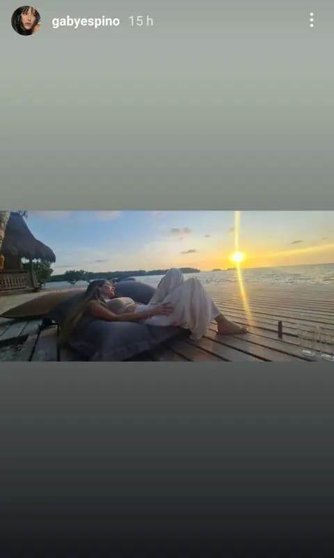 La actriz reveló que estaba en Isla Cuatro Aguas, una isla privada que funge como un resort de lujo, en el Caribe. Desde ese lugar, Gaby dio un vistazo de lo bien que la estaba pasando. Por lo que mostró, se veía tranquila y disfrutando en grande de este bello lugar. Hacia el atardecer, la actriz se hizo una sesión de fotos improvisada, luciendo un vientre plano, un bikini y un pareo que cubría la parte inferior de su cuerpo.