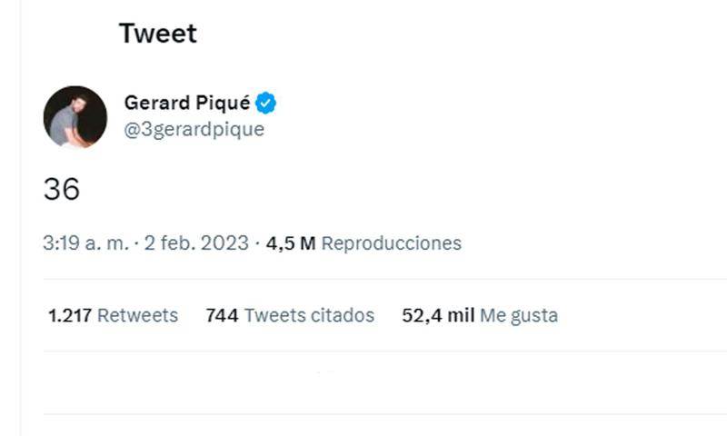 Mientras las celebraciones de Shakira acaparan las redes sociales, e incluso su nombre es trending topic en algunas de ellas como Twitter, los festejos de Piqué han sido más discretos y en sus plataformas se ha mantenido al margen sobre la forma en la que celebra sus 36 años. El exdefensa del FC Barcelona únicamente se limitó a escribir un tuit con su edad.