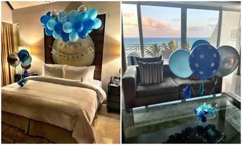 El cumpleaños 47 de Gabriel Soto es el 17 de abril, por lo que viajó a la playa hace unos días con su novia y el hotel les decoró la habitación con globos azules.