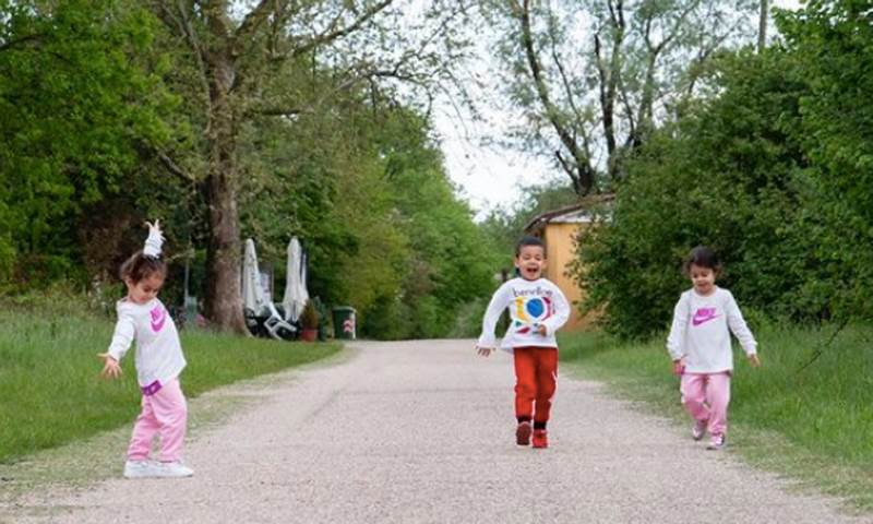 En esta foto vemos a los 3 pequeños de la casa felices, contentos y disfrutando como siempre de los momentos en familia. Los mellizos Eva y Mateo y la pequeña Alana corren y juegan como niños en un bonito espacio rural.