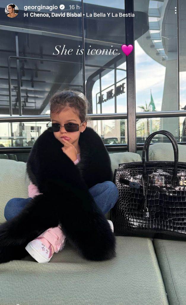 Anteriormente, Georgina ya ha mostrado que su hija menor es toda una fashionista en potencia. “Ella es icónica”, escribió la orgullosa mamá en diciembre al publicar una foto en la que aparecía su hija sentada junto a un bolso Hermèsnegro de piel de cocodrilo vestida con una lujosa estola de pelo negro y unas gafas oscuras.