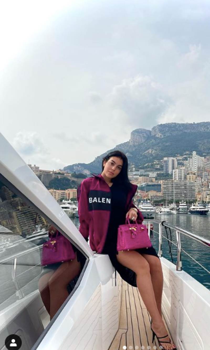 Una de nuestras celebridades favoritas, Georgina Rodríguez; vuelve a estar en el punto de mira. Esta vez, la mujer de la estrella internacional de fútbol Cristiano Ronaldo, ha arrasado en redes con unas impresionantes fotos en un majestuoso yate. En las fotos Georgina luce un look sostificado, lo cual no nos sorprende, ya que estamos acostumbrados a ver sus despampanantes y llamativos looks. La modelo luce una chaqueta morada de Balenciaga que la combina con un precioso vestido negro y una fina sandalia de salón.
