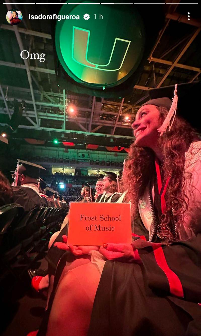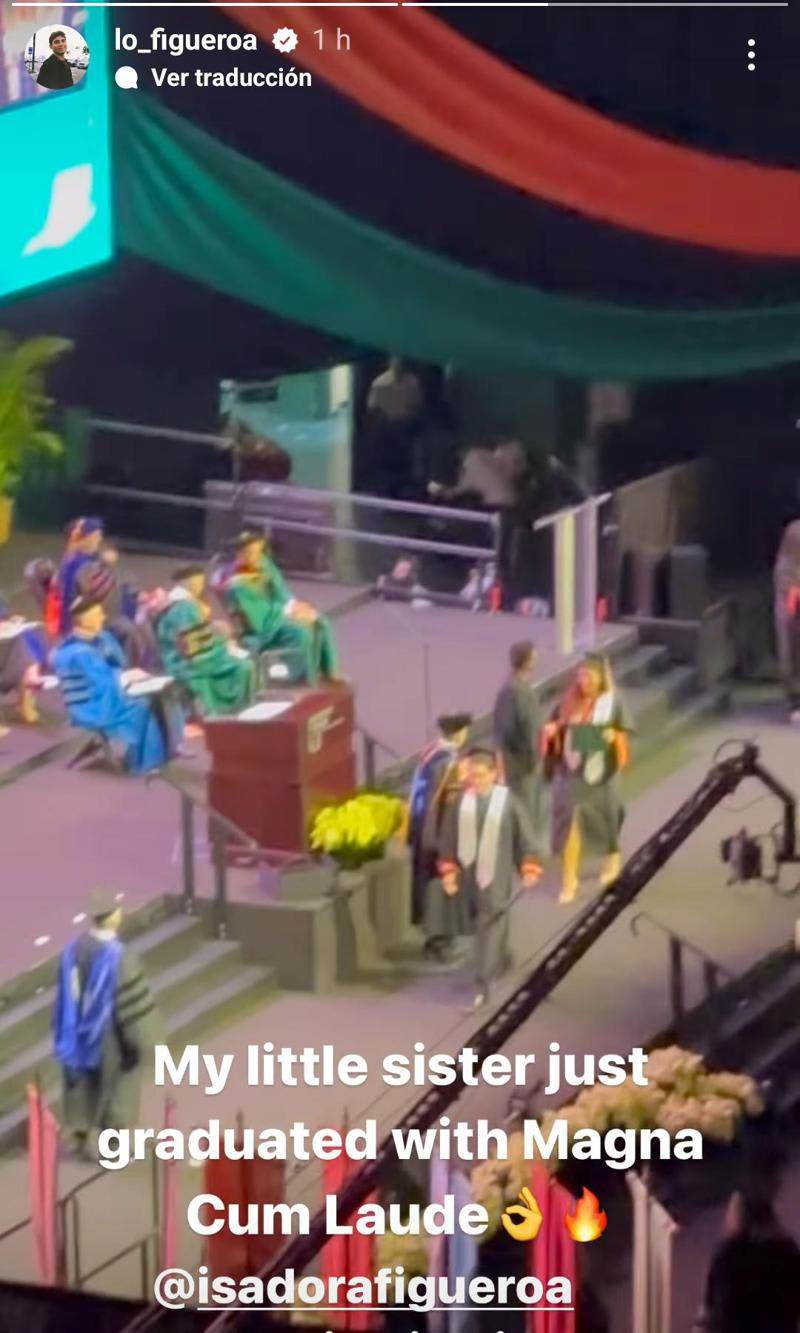 Su hermano mayor, Lorenzo Figueroa usó sus redes sociales para mostrar el momento justo en el que Isadora era anunciada para recibir su diploma. “Mi hermanita se acaba de graduar con los máximos honores”, escribió el primogénito de Chayanne sobre un video que publicó en sus historias de Instagram, etiquetando a la laureada y su universidad.