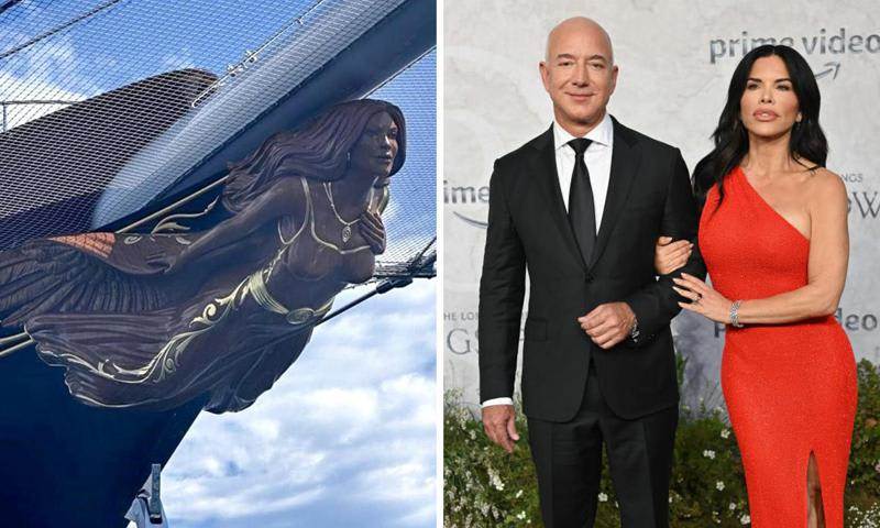 La proa de este lujoso yate está decorada con una figura de madera y acabados dorados con aspecto femenino. La mujer, de diminuta cintura y amplio busto, también tiene el cabello largo y una cara muy similar a la de Lauren. Algunos creen que es un romántico homenaje a la presentadora de televisión así como una gran muestra de amor de Jeff a la mujer que le robó el corazón cuatro años atrás.