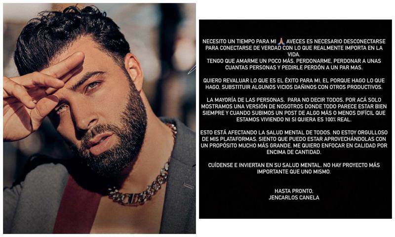 Sin más que decir, escribió una despedida que no anticipa fecha de regreso: “Cuídense e inviertan en su salud mental. No hay proyecto más importante que uno mismo. Hasta pronto, Jencarlos Canela”.