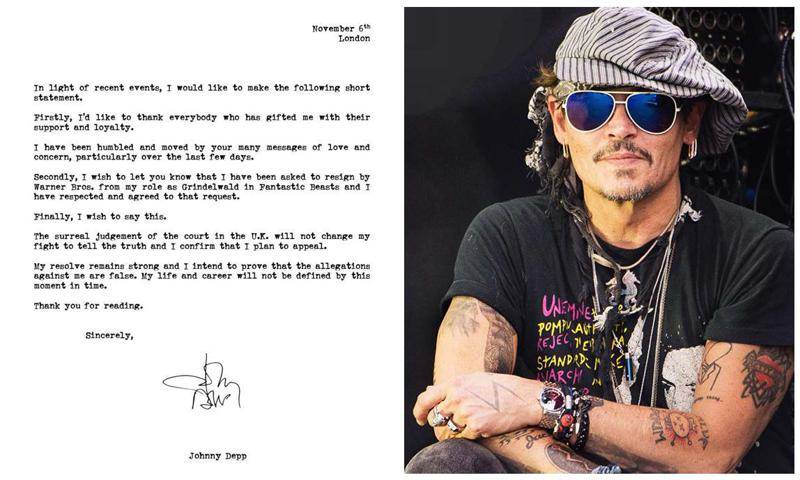 “Finalmente, me gustaría decir esto: ‘El juicio irreal de la Corte en U.K. no afectará mi lucha por decir la verdad y confirmar que planeo apelar. Mi determinación permanece fuerte e intento probar que las declaraciones en mi contra son falsas. Mi vida y carrera no se definirán por este momento de mi vida. Gracias por leer”, concluyó Depp.