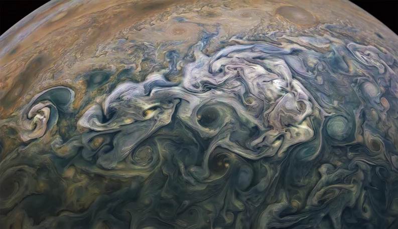 Las nuevas imágenes de Juno dan una idea más clara a los científicos sobre los procesos atmosféricos del planeta y la formación del granizo de amoniaco.