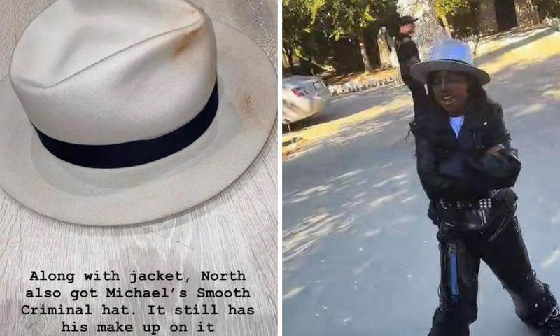 La propia Kim publicó en sus redes sociales que la pieza perteneció al cantante que falleció en 2009. “A juego con la chaqueta, North también usó el sombrero de Michael en Smooth Criminal. Aun tiene su maquillaje en él”, expresó la socialité. La pieza fue un obsequio de Navidad de su abuela, Kris Jenner, en 2019 cuando compró varios objetos en una subasta. Entre ellos también se encontraba la chaqueta de terciopelo que el cantante usó en la fiesta de cumpleaños 65 de Elizabeth Taylor, en 1997.