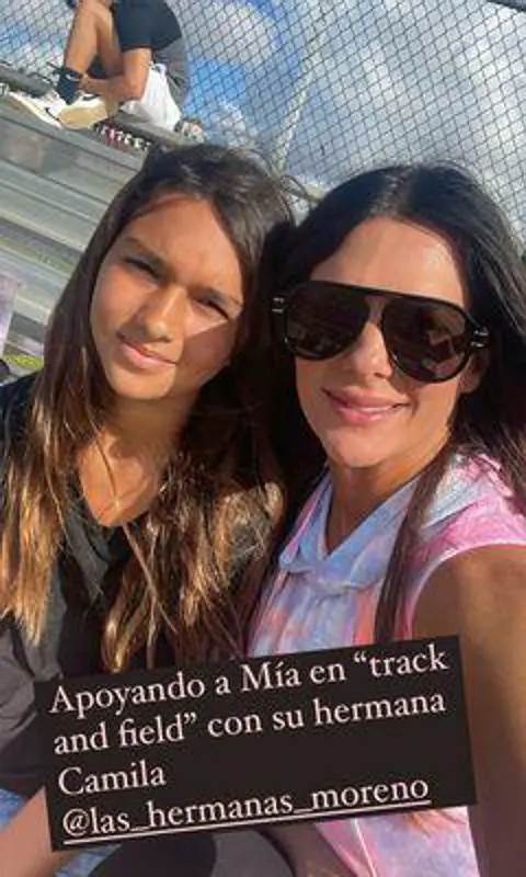 Mía, de 12 años, triunfó en una carrera de atletismo. Bermudo compartió en sus stories el gran momento de su hija pasando por la meta, antes de brincar con éxito unas vallas. Mía quedó en primer lugar y mientras celebraba su tirunfo, su madre y su hermana menor Camila hacían lo miso desde las gradas. Además de esa carrera de velocidad, la niña presumió de sus habilidades deportivas en un salto de altura.