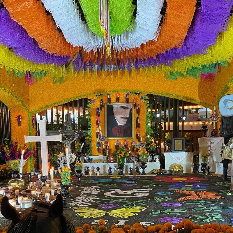 En el rancho Los Tres Potrillos, en el estado mexicano de Jalisco, se instaló una ofrenda tradicional de Día de Muertos en honor a Vicente Fernández, la cual se informó, estaría abierta al público. En la presentación estuvo presente la viuda del cantante, quien fue cuestionada respecto a su matrimonio y las especulaciones que hubo en torno a él.