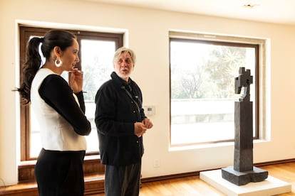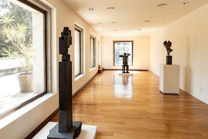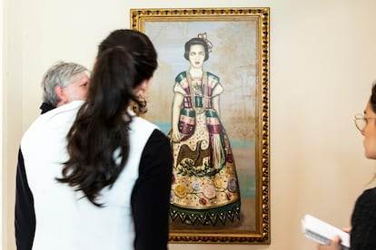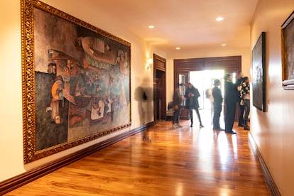 Las obras estaban pensadas para decorar los muros de la antigua casa presidencial, entonces ocupada por el priista Carlos Salinas de Gortari. Era 1993 y el mandatario había encargado 33 pinturas a algunos de los principales artistas de la época, grandes exponentes del neomexicanismo como Julio Galán. Aquellos cuadros vistieron unos corredores y unas recámaras que solo recibían la visita y la mirada del presidente, de su familia y de sus distinguidos invitados. Ahora vuelven a ocupar esos espacios, pero tienen compañía nueva y múltiples miradas dispuestas a posarse sobre ellos en una exposición que explora la relación entre el arte y el poder a finales del siglo pasado, cuando el neoliberalismo despegaba en el país. Los Pinos, reconvertido desde 2018 en centro cultural abierto al público, acoge ese acervo junto con otras casi 40 cuarenta obras del patrimonio nacional, esculturas incluidas, seleccionadas para conversar con él.