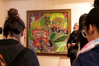 En ella conviven pinturas realistas con lienzos abstractos, arboledas con paisajes interiores y cuerpos en tensión, lo urbano con lo rural, lo político con lo costumbrista, el color de Pedro Friedeberg con el negro cerrado de Beatriz Zamora. “Un registro visual del imaginario moderno mexicano, articulado entre figura humana, símbolo, crítica y evocación social”, según se lee en la presentación de la Secretaría de Cultura. Todo cabe en esta aproximación a la identidad mexicana, alejada ya del muralismo tradicional que marcó la época posrevolucionaria. El neomexicanismo de los años 80 y 90 experimentaba con otras formas. “Era un momento de inquietud plástica”, dice Santamarina, y de ello da muestra una exhibición que también busca hacer justicia e incorporar artistas y temas que entonces no recibieron la atención de las altas esferas.