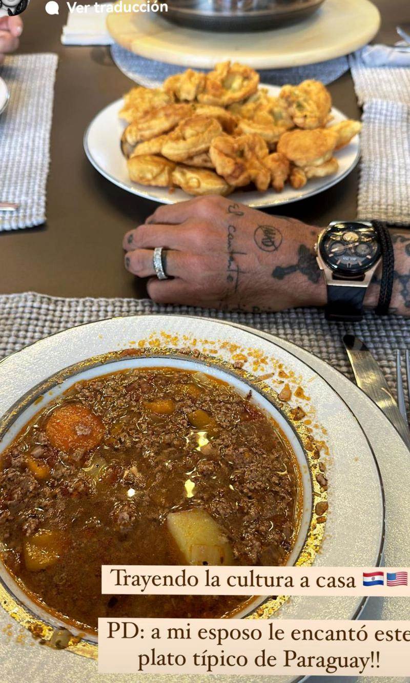 Últimamente, la señora Ludy ha estado ocupada, pues no solo ha consentido a su hija con su sazón, sino que también ha cocinado para su yerno, el cantante Marc Anthony. Hace unos días, Nadia y su mamá prepararon un soyo con tortillita, un platillo típico de Paraguay. Según la propia Nadia, el guisado fue del agrado del intérprete de Vivir mi vida. “Trayendo la cultura a casa. PD: A mi esposo le encantó este plato típico de Paraguay”, escribió la modelo debajo de la foto del guisado, el cual tenía una pinta espectacular.