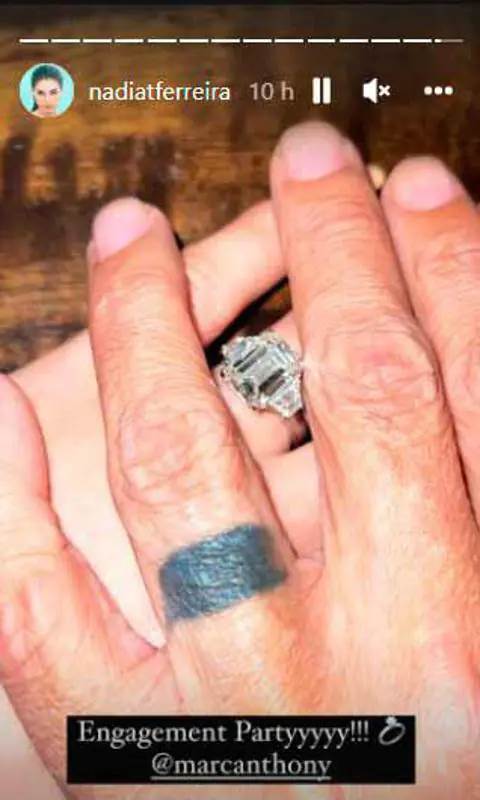 En sus stories, Nadia publicó una fotografía en la que aparecen sus manos entrelazadas con las de Marc, y ella aparece luciendo un anillo con un gran diamante en corte radiante y sobre la imagen escribió: “Engagement Party!!!” y etiquetó a Marc en el post. La pareja celebró su fiesta de compromiso en el exclusivo club nocturno Sexy Fish, en Miami, Florida.