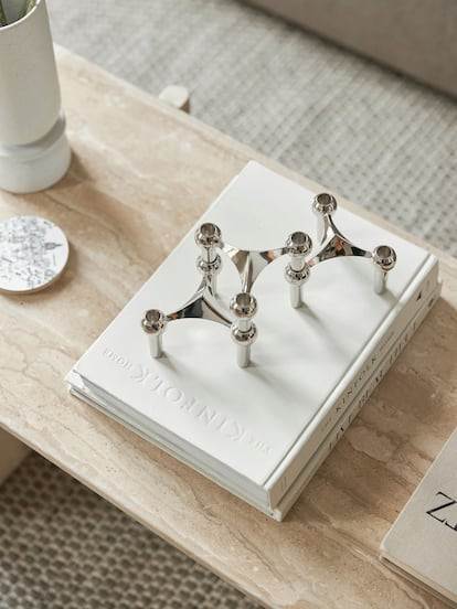 Álvaro Toledo (Madrid, 31 años) podría engrosar esta estadística. El apartamento del creador de contenido especializado en decoración con más de 300.000 seguidores en su cuenta de Instagram, @planc.home, es un ejemplo del poder visual que ejerce el tubo de acero en la vida de un hombre soltero. Fiel defensor de las sillas Cesca que presiden su comedor –su creador, el húngaro Marcel Breuer, encabeza también el estudio de Pinterest con un 40% de búsquedas– o los muebles virales de USM Haller, un icono del diseño modular desde 1965 gracias a sus estructuras de acero cromado, en las fotografías que muestran su hogar no faltan piezas metálicas de menaje ni los candelabros Nagel, que confiesa coleccionar desde hace años. “El metal cromado resulta atemporal, lo podemos ver en diseños de hace cien años como las Cesca, que siguen vigentes a día de hoy pero también en diseños actuales. Representan la modernidad y aportan un toque de frescura enriqueciendo el espacio”, explica.