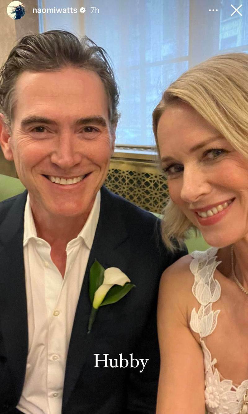 Tras seis años en una discreta relación, Naomi Watts y el actor Billy Crudup revelaron la feliz noticia de su boda. La actriz de Vigilante compartió en sus redes sociales una fotografía para confirmar la noticia. En la instantánea, se aprecia a los recién casados, con una gran sonrisa, a las afueras de los juzgados de Nueva York. “(Hitched) Enganchados”, se lee en el pie de la imagen, acompañada por un emoji de una paloma, un símbolo de infinito y un corazón.