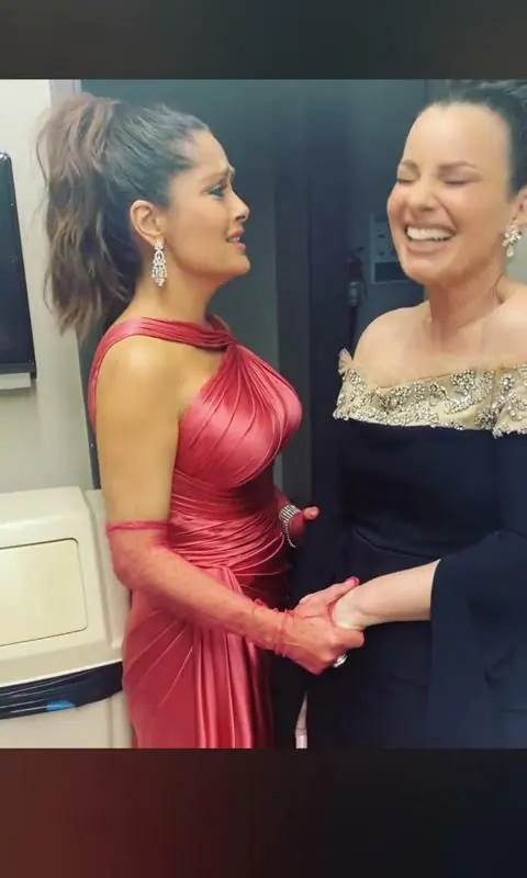 En tanto, ambas se ponían al día y se reían de la divertida situación, ya que no daban crédito a lo que les estaba sucediendo. “¡No puedo creer esto! ¿Lo estás grabando! Oh por Dios”, dice Fran a una de las cámaras que grabó el cómico momento. “¡Estamos atoradas!”, dice Salma Hayek, mientras la inolvidable ‘Nana Fine’ le comenta lo increíble que estuvo en House of Gucci, en el papel de Pina Auriemma.