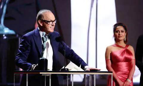 Curiosamente, Keaton casi se pierde la entrega de su premio ¡pues estaba en el baño! Esto implicó que Salma apareciera a cuadro sola por unos segundos. Cuando Michael pasó a recoger la estatuilla, se disculpó. “Lo siento, tuve que hacer una visita rápida al baño, y estaba lleno, por cierto”, bromeó el actor de 70 años.