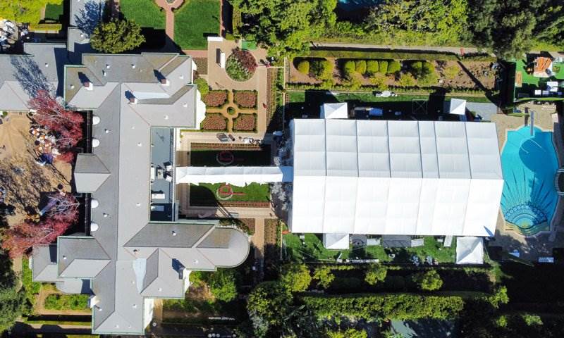 Para celebrar por todo lo alto, Paris acondicionó los jardines de la mansión con una gran carpa colocada junto a la piscina, una pista de baile, además de cientos de rosas rojas y blancas que formaban las iniciales de los novios.