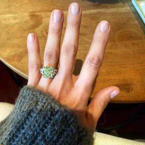 La también actriz mostró un par de imágenes más de su anillo, ése del diamante verde que ha estado en el foco de atención desde el sábado por la noche. tes de su vida y que suma un lindo recuerdo en esas anécdotas.