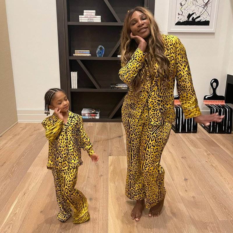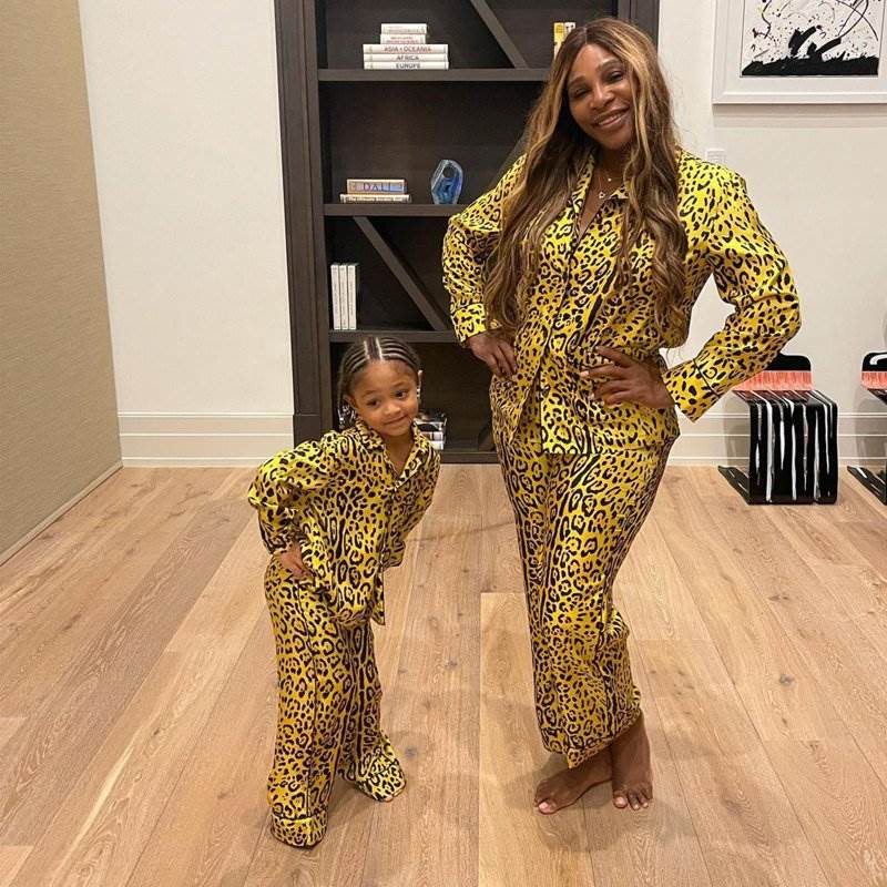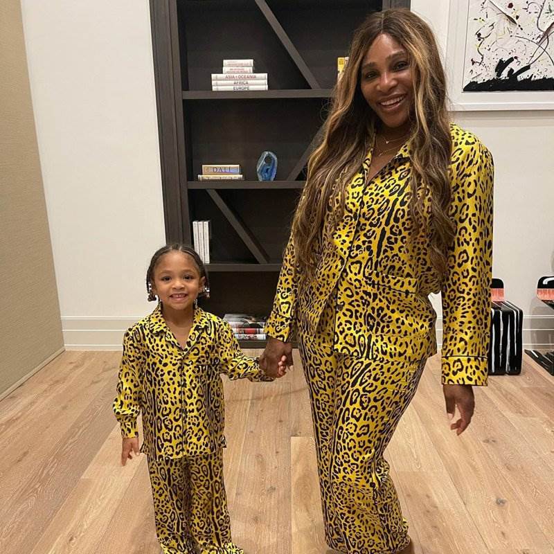 En las instantáneas, Williams y su hija vestían una camisa de botones con estampado de leopardo de color amarillo brillante y un par de pantalones de pijama a juego, luciendo cómodas y adorables a la vez.
