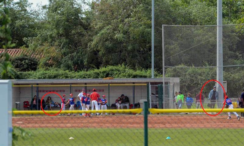 La expareja guardó distancia entre sí y se sentaron en lados opuestos del campo junto con las personas que los acompañaban. Shakira animó a su hijo en compañía de unas amistades y su madre, mientras que Gerard estaba del otro lado con su mamá.