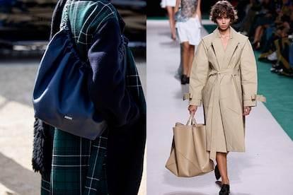 Más allá del fenómeno Birkin, el tema de los bolsos grandes lleva unas temporadas firme en las tendencias. Después de un boom por aquellos bolsitos en los que solo cabían dos monedas —y hoy nadie lleva monedas—, como el viral Le Chiquito de la firma francesa Jacquemus, en los últimos tres años las grandes marcas de lujo han hecho de los bolsos grandes sus nuevos objetos del deseo: es el caso del modelo Y, lanzado por Saint Laurent en el otoño de 2024, del superventas Jodie (que debe su nombre a la actriz Jodie Foster, en un homenaje que mezcla moda y aversión a los paparazzi) de Bottega Veneta y que mide 42 de ancho, 65 de alto y 20 de profundidad, y unos cuantos diseños de Loewe, Coach, Proenza Schouler, Hermès, Marni o Nanushka. Todas estas marcas son las que inspiran después a grandes cadenas, como Zara, Mango o COS, pero también a las firmas que quedan a medio camino (Demellier, Polène), donde igualmente reinan los bolsos grandes.