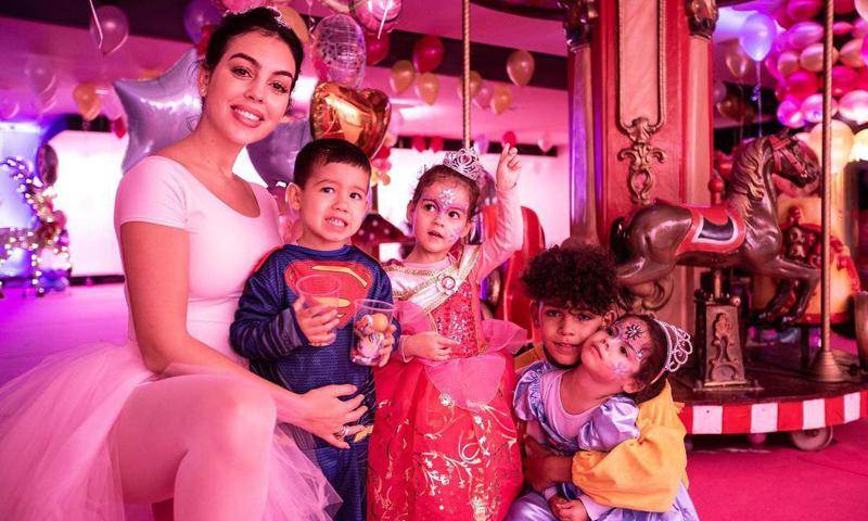 Georgina Rodríguez no ha vuelto a sorprender son sus grandes habilidades como organizadora y anfitriona. La pareja de Cristiano Ronaldo preparó unafiesta de disfraces para sus pequeños, en la que no han faltado todo tipo de amenidades y elementos decorativos como luces de colores, globos y hasta un carrusel. La modelo usó sus redes sociales para compartir con sus seguidores un poco de la emoción que sus hijos disfrutaron al máximo. En la imagen, se aprecia a Alana (su hija biológica con el futbolista), además de los gemelos Eva Maria y Mateo (fruto de una gestación subrogada) y el mayor de ellos, Cristiano Junior, hijo de ‘CR7’.