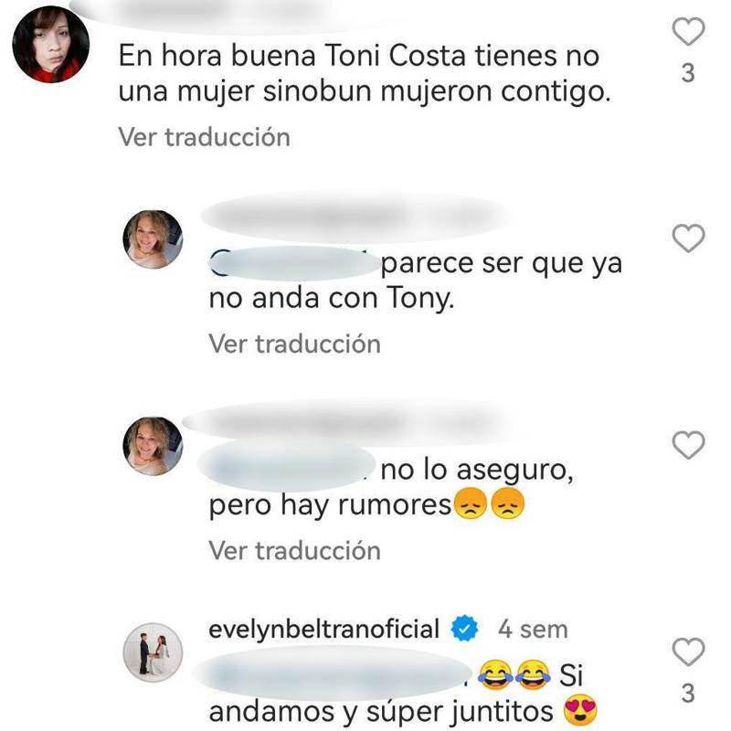 Además de esto, la propia Evelyn desmintió en sus redes sociales que estuvieran separados como se especulaba. Una de sus seguidoras comentó un post en sus redes con lo siguiente: “Parece que ya no anda con Toni”. A lo que ella respondió: “Sí andamos y súper juntitos”. Eso sí, los posts de la modelo al lado de Toni han cesado, por lo que los rumores tomaron fuerza, pero ahora se sabe que están pasando por un gran momento en su relación.