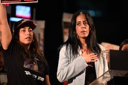Einav Zangauker, la “pesadilla” de Netanyahu —como ella mismo se definió al entender cómo le había mentido sobre su voluntad de traer a su hijo Matan— se llevó un largo aplauso al subir al escenario. Se ha convertido en un símbolo y dispara contra el primer ministro, cuyo nombre abuchea el público. “Hamás ha aceptado el acuerdo. El fin de nuestro sufrimiento depende y recae en los hombros de una sola persona: Netanyahu, ¡devuelve a todos, ahora!”.